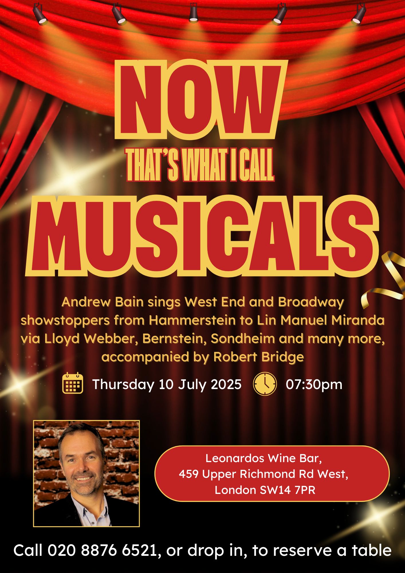 There was Beethoven 9; there was some piece by Brahms; but all this threatens to be eclipsed on Thursday night when our very own lovely/tall/noisy* tenor, Andrew Bain will be treading the boards – and possible the tables if things get a little loose – at Leonardo’s Wine Bar to give a whistlestop tour of musical show stoppers: from South Pacific to West Side Story, from Les Mis to Hamilton, with more than enough Andrew Lloyd Webber in between, this promises to be an evening to remember – if indeed you remember anything at all the next morning after a bottle or two of Leonardo’s vino. Spaces are going fast…